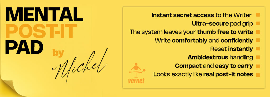 What looks like an ordinary Post-it note is actually a cleverly designed tool that allows you to carry your writer effortlessly, write comfortably, and reset instantly, all in the most natural way possible. It fits in any pocket, uses real Post-it notes, and feels completely innocent in the your hands.